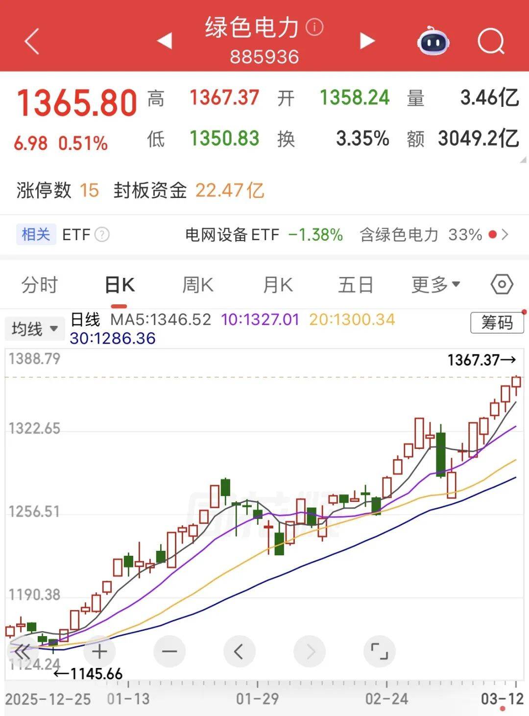 3月12日,绿色电力概念板块走势活跃(yue),多只股票涨停。
