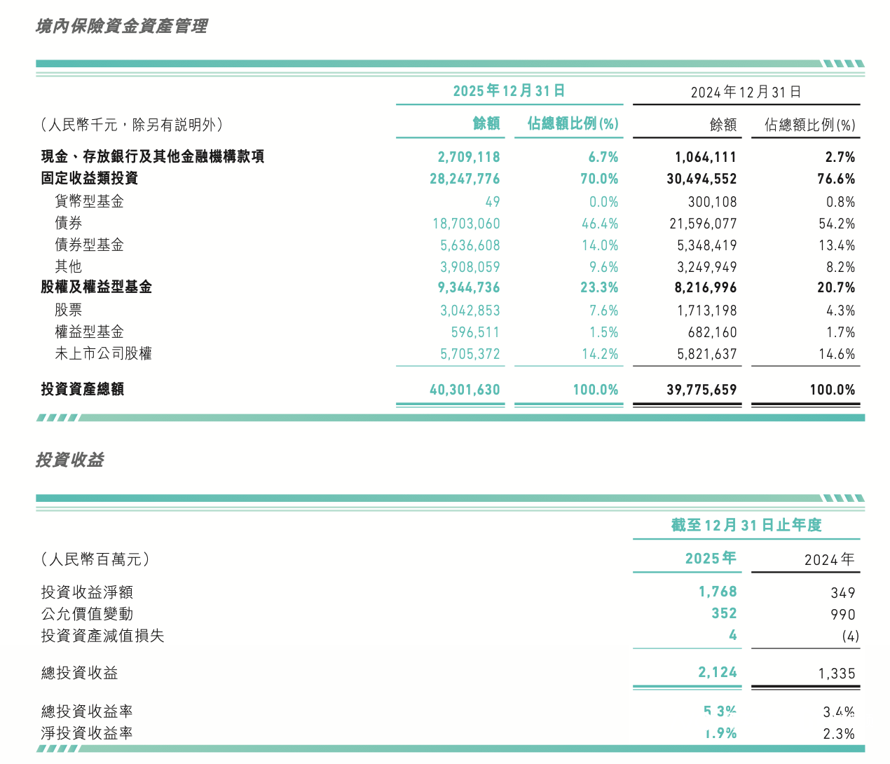 总投资收益同比增59%,权益资产占比提拔