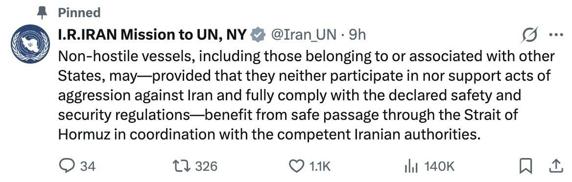 总台记者获悉(xi),当地(di)时候25日(ri),伊朗常驻联(lian)合国代表团发表声明表示,非征战国度的船只可以平安通过霍尔木兹海峡。