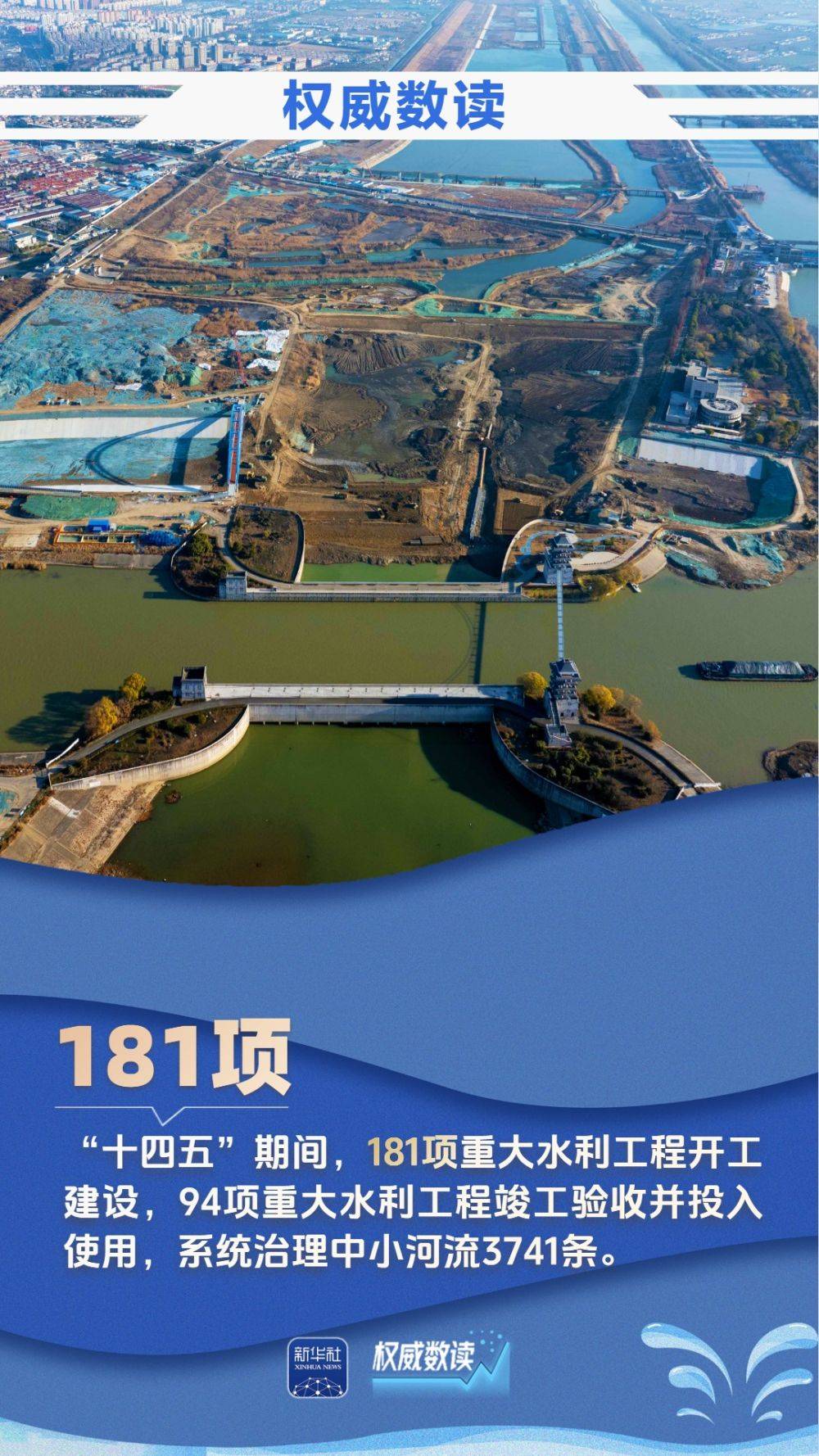 水(shui)运连着国运,江(jiang)河滋养文明。近年来,我国水(shui)网建设成绩亮眼,粮食安全水(shui)利保障不断(duan)筑牢,人民群(qun)众对生态环境(jing)满意度日益提高……3月22日是世界水(shui)日,我们梳理了九组数(shu)据,一起跟随海报,见证大国治水(shui)的生动画卷,共览(lan)人水(shui)和谐的时代新篇。