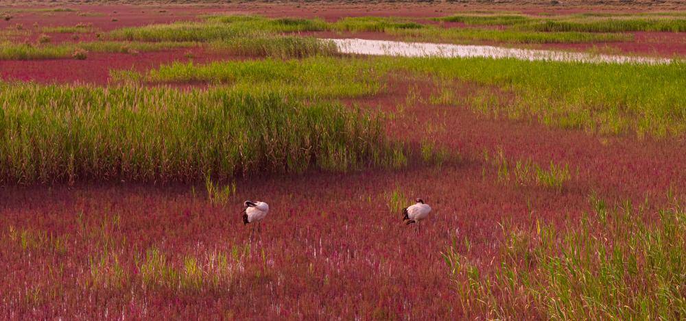 正在山(shan)东黄河(he)三角洲国度(du)级自然保护区,盐地碱蓬为滩涂铺上了“红地毯”。(受访者供图(tu))