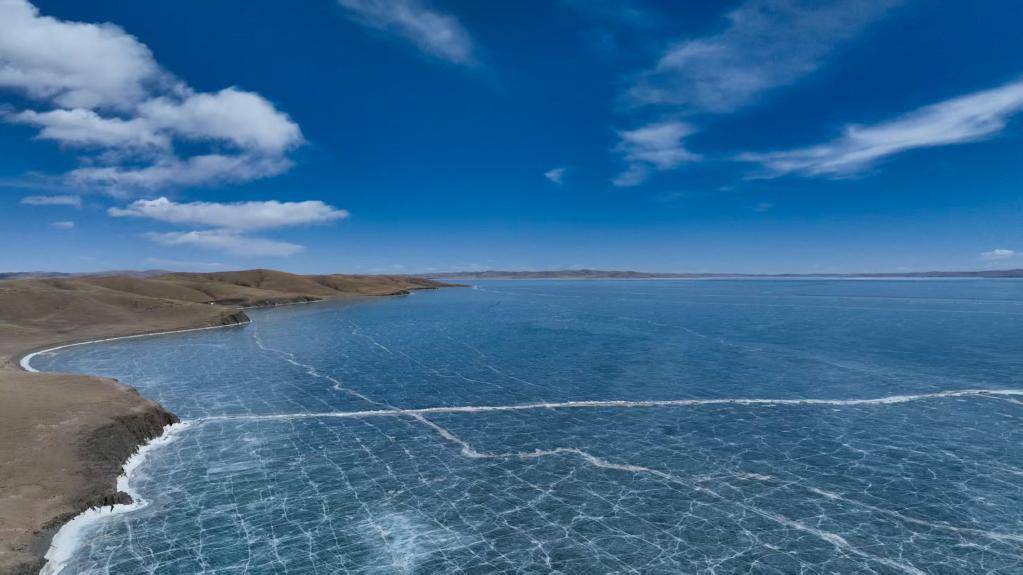 这是3月10日正在青海省果(guo)洛藏族自治州(zhou)玛多县境内拍摄的扎陵湖(hu)一角(无人机照片)。新(xin)华社记者 李占(zhan)轶 摄
