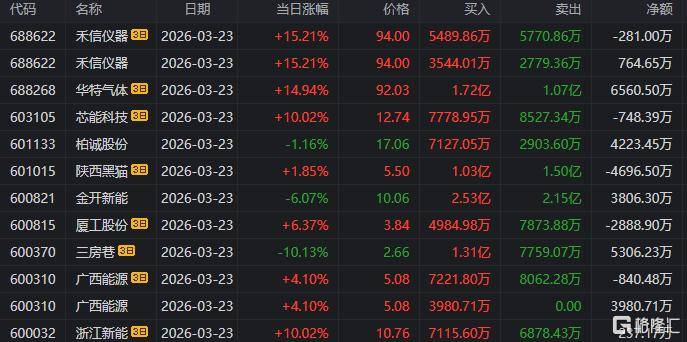 龙虎榜单日净买入额前三(san)为拓日新能、中(zhong)鼎(ding)力(li)大举德、华民股分(fen),分(fen)别为3.32亿元、1.48亿元、1.35亿元。