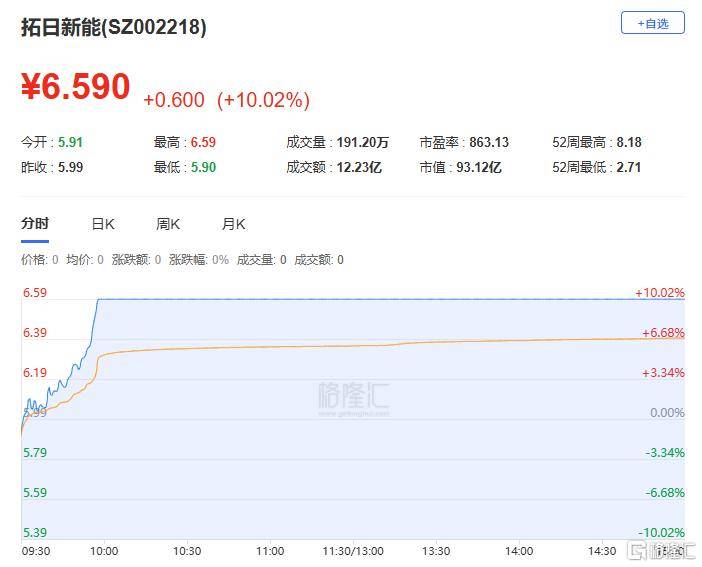 拓日新能:今日涨(zhang)停,全天(tian)换手率13.73%,成(cheng)交额12.23亿元,振幅11.69%。龙虎榜数据显示,机(ji)构净买入3284.07万元,深股通净买入4910.71万元,业务部席位合计净买入2.50亿元。