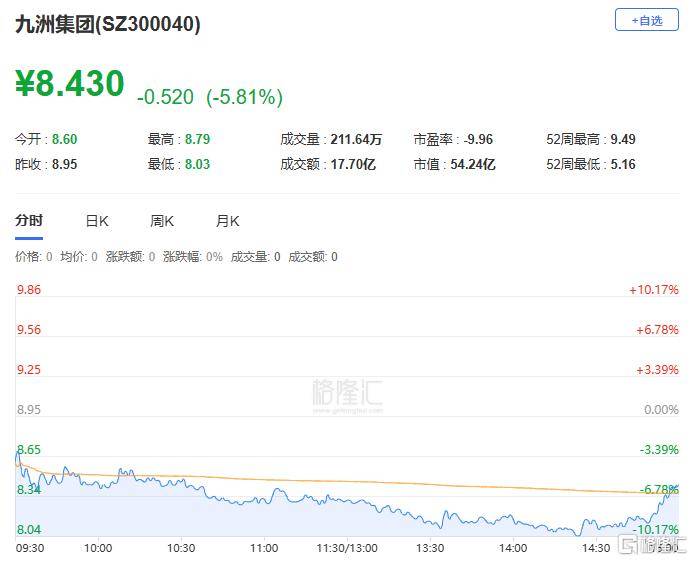 九洲集(ji)团:下跌5.81%,换手率40.91%,成(cheng)交量211.64万手,成(cheng)交额17.7亿元。主力(li)资金净流出1.78亿元,占总成(cheng)交额10.04%,游(you)资资金净流入9473.21万元,散户资金净流入8294.89万元。