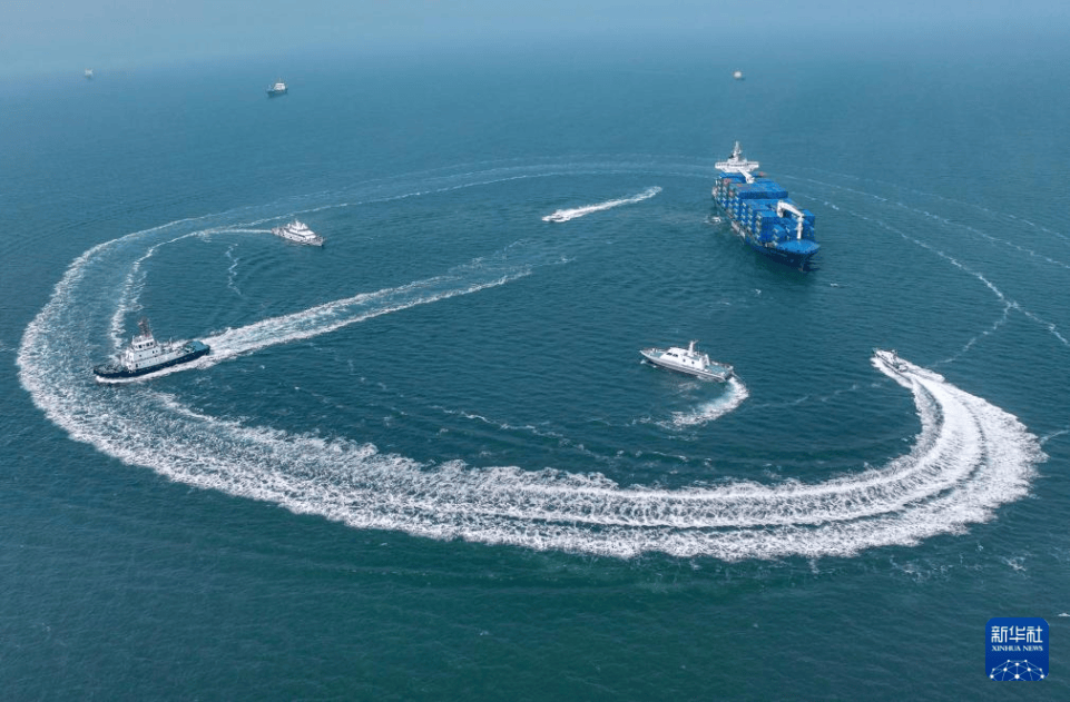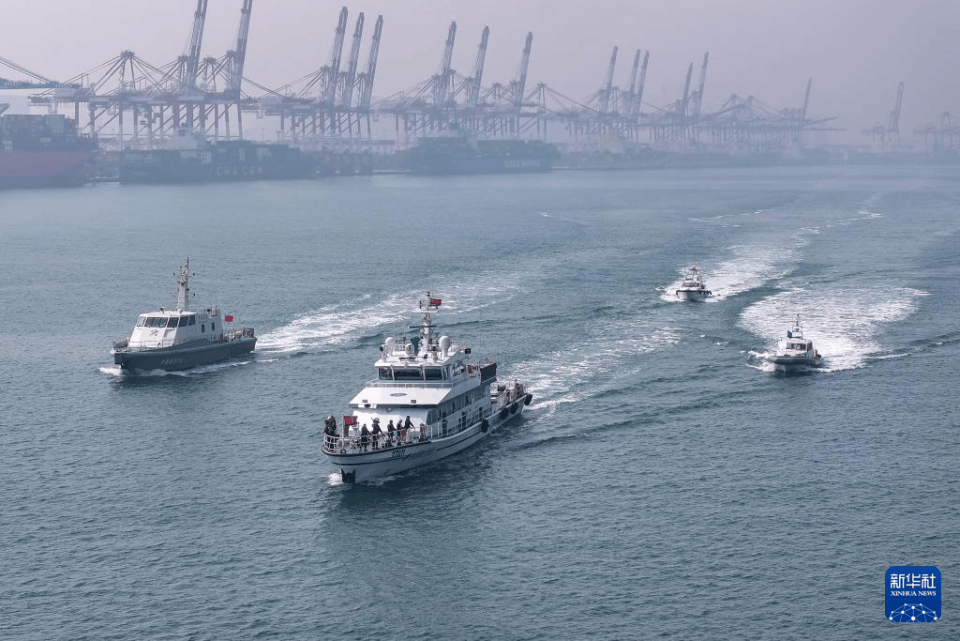 3月25日,执法船只在港区进行联合(he)巡(xun)查(无人(ren)机照片)。新华社记者(zhe) 朱峥 摄