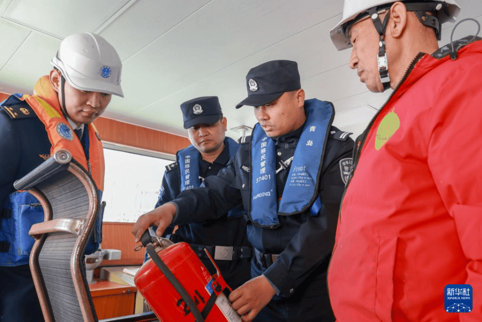 3月25日,执法职(zhi)员在行动中(zhong)检(jian)查船舶消(xiao)防设备(bei)。新华社记者(zhe) 朱峥 摄