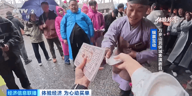 在万岁山武侠城,多数演出都能互动,互动赚来的“银票”还能够在景(jing)区内兑换礼品。