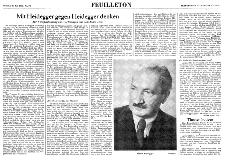 正在波恩求学时代,哈贝马(ma)斯(si)就已崭(zhan)露头角。1950/51年冬季学期,正在罗(luo)特哈克的钻研课上,哈贝马(ma)斯(si)结识了比他年长七岁的哲学家阿(a)佩尔。阿(a)佩尔的积极思考(kao)及其对美国实用主义的兴趣,对哈贝马(ma)斯(si)日后的哲学发展产生了深远的影响。也是正在阿(a)佩尔的影响下,哈贝马(ma)斯(si)存眷到海德格尔《形而(er)上学导论》中存正在的问题,由此(ci)激发了一场争辩(bian)。1953年,年轻的哈贝马(ma)斯(si)向《法兰(lan)克福(fu)汇(hui)报》投稿,发表了第一篇重要(yao)的公开争执文章《与海德格尔一起思考(kao)阻挡海德格尔》(Mit Heidegger gegen Heidegger denken)。