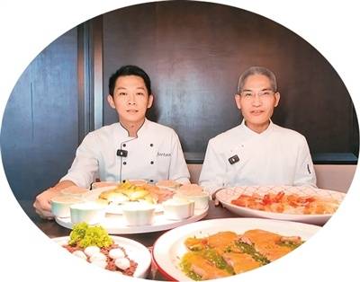 马来西亚青年陈(chen)祖州(左)与徒弟柯道岳共秀(xiu)厨艺。 牛良玉摄