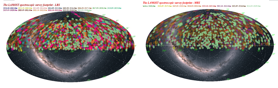 据相(xiang)识,LAMOST DR13数据集(ji)的观察周期(qi)从2011年10月到2025年6月,笼盖6961个低分辨率观察天区、3404个中分辨率观察天区。公布(bu)的3082万条(tiao)光谱包含约1347万条(tiao)低分辨率光谱、1735万条(tiao)中分辨率光谱。此外,DR13公布(bu)的数据中还包含一(yi)个约1294万组(zu)的恒星光谱参数星表。LAMOST公布(bu)的光谱总数与恒星参数星表规模持(chi)续连结国际(ji)领先。