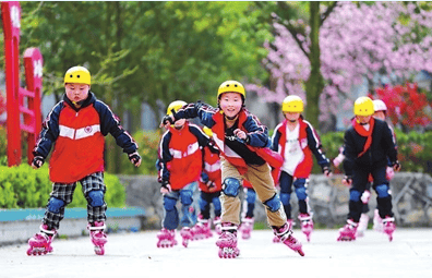 贵州省黔西市钟山(shan)镇钟山(shan)小学轮滑社团的(de)学生在校园内练(lian)习轮滑。材料图片