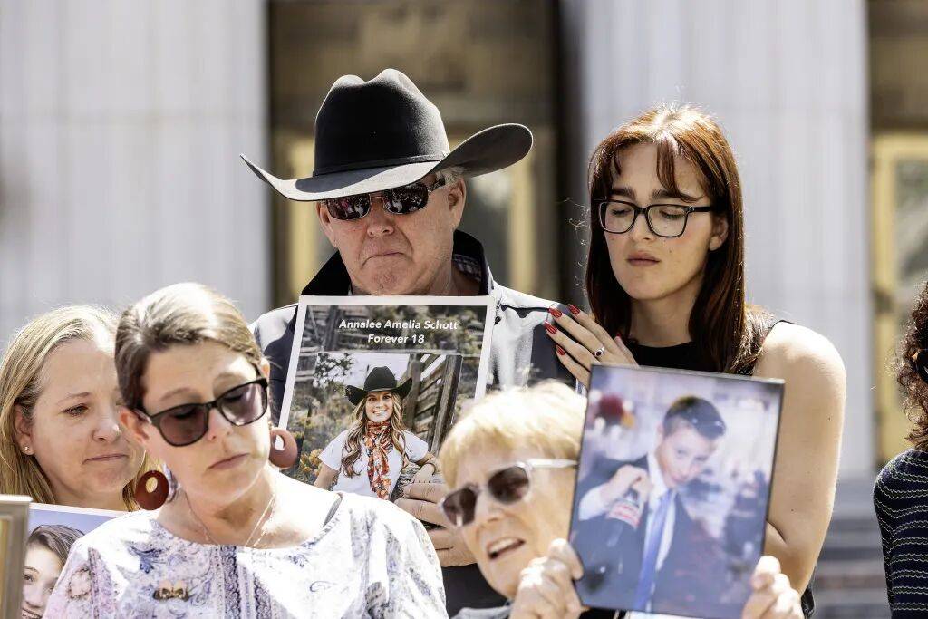 外地时间(jian)2026年3月(yue)25日,美国加利福(fu)尼(ni)亚州洛杉矶(ji),因(yin)交际媒(mei)体成瘾致使亲人自杀(sha)的家族正在洛杉矶(ji)高等法院外对陪审团裁定Meta和YouTube负有义务的讯断作出反应。视觉我国 图(tu)