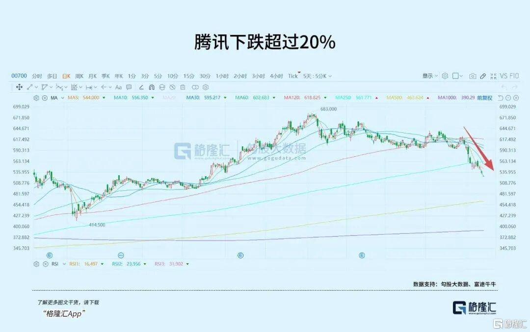 最近的表现确实让(rang)人有些揪心(xin),作为港股的“定海神针”,从25年10月的高位回调,至今跌(die)幅已(yi)经(jing)达23%,市值跌(die)没了1.43万亿,这两周经(jing)历了两波非常明显的连续回撤,MA250及以下的技术线,全部击穿。