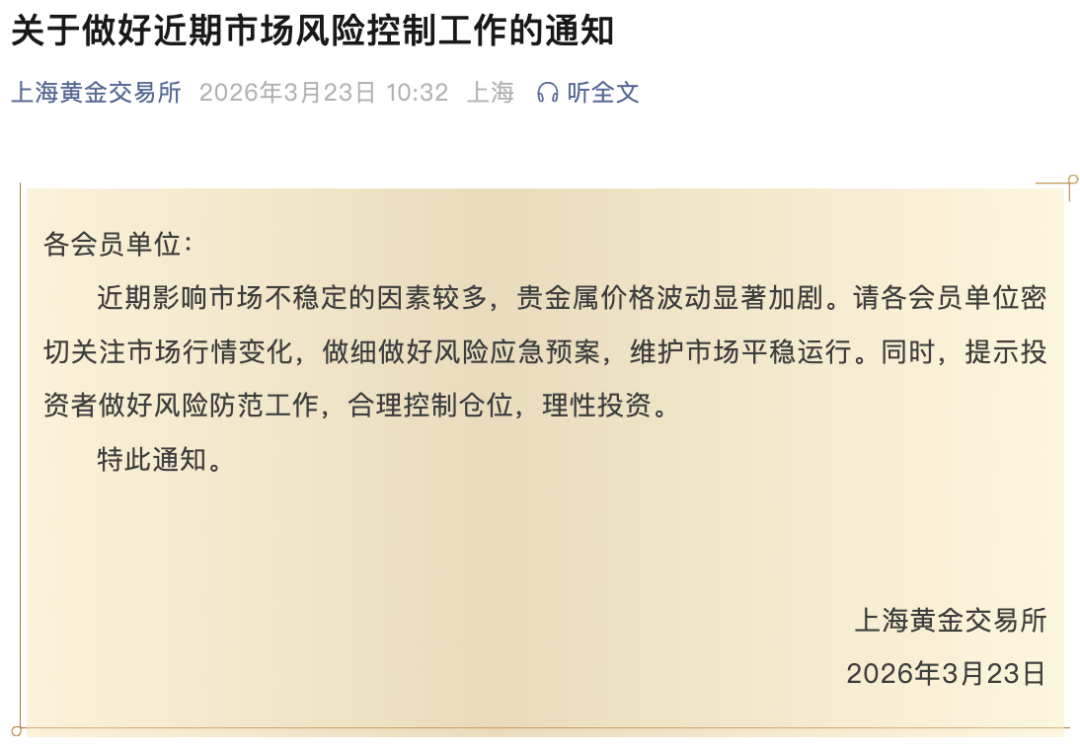 今早(23日),上海黄金生意业务所(suo)发布(bu)关于做好近期市场风险操纵(zong)工作的通(tong)知(zhi)。全文如下(xia):
