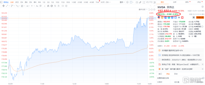 没(mei)有过市场对此(ci)反应(ying)清淡,周二美股(gu)夜盘,英伟达(da)股(gu)价微跌0.35%,报182.01美元。