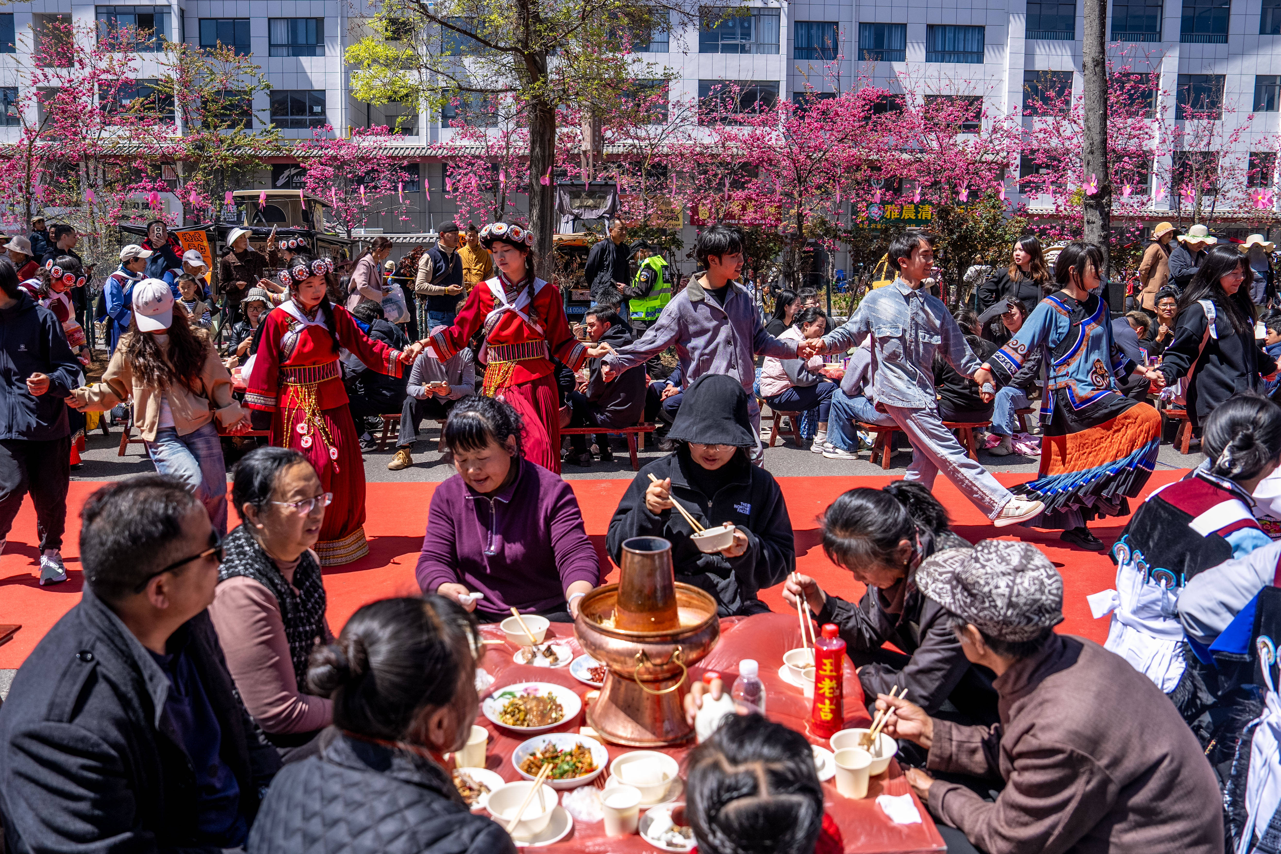 3月26日,人们在丽江市雪(xue)山(shan)路长街宴流动现场(chang)品味美食。 新(xin)华社记者 胡超 摄