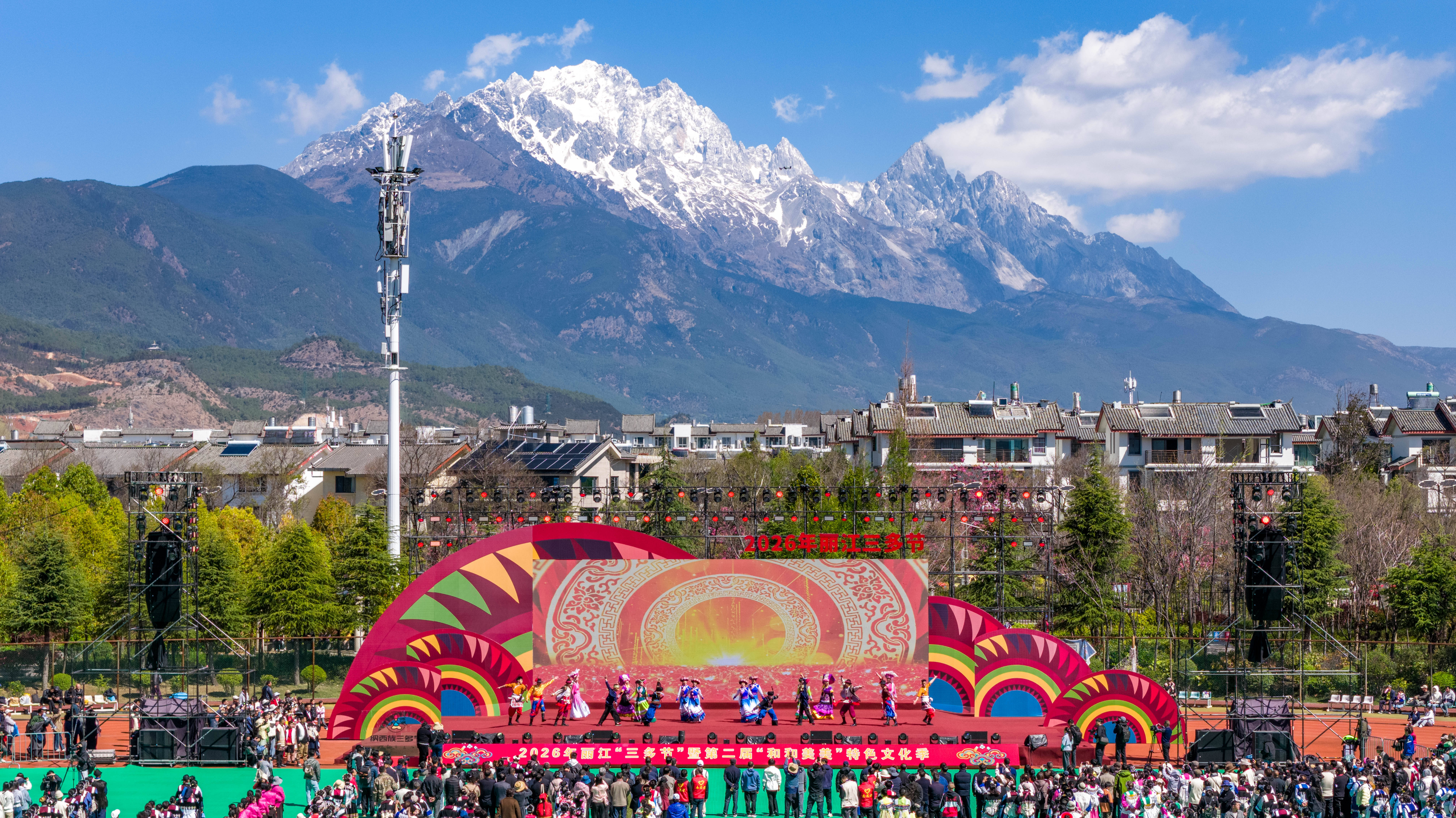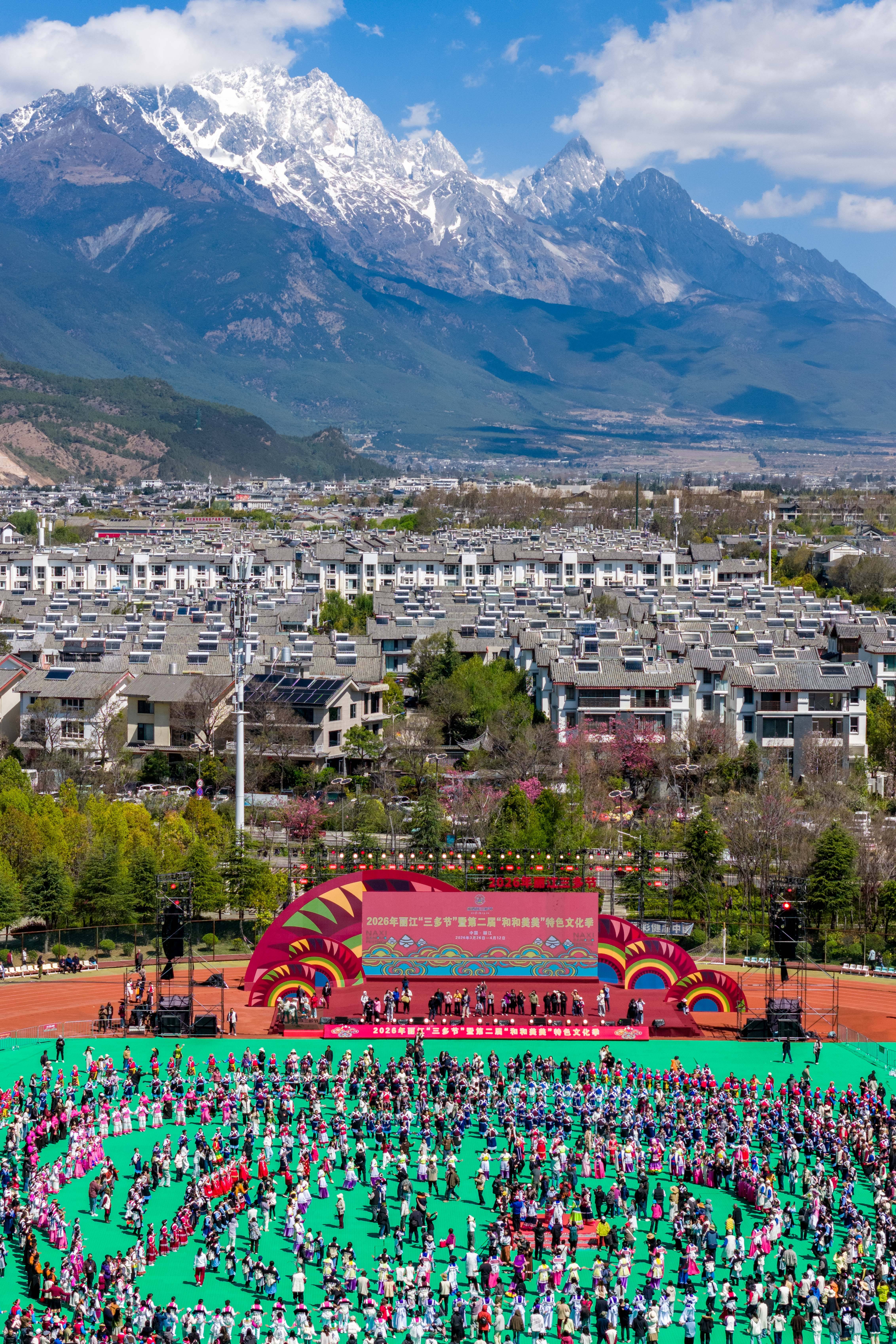 3月26日拍摄的丽江“三多节”暨第二(er)届“和和美美”特色文明季系列流动落(luo)幕式(shi)现场(chang)(无人机照片)。 新(xin)华社记者 胡超 摄