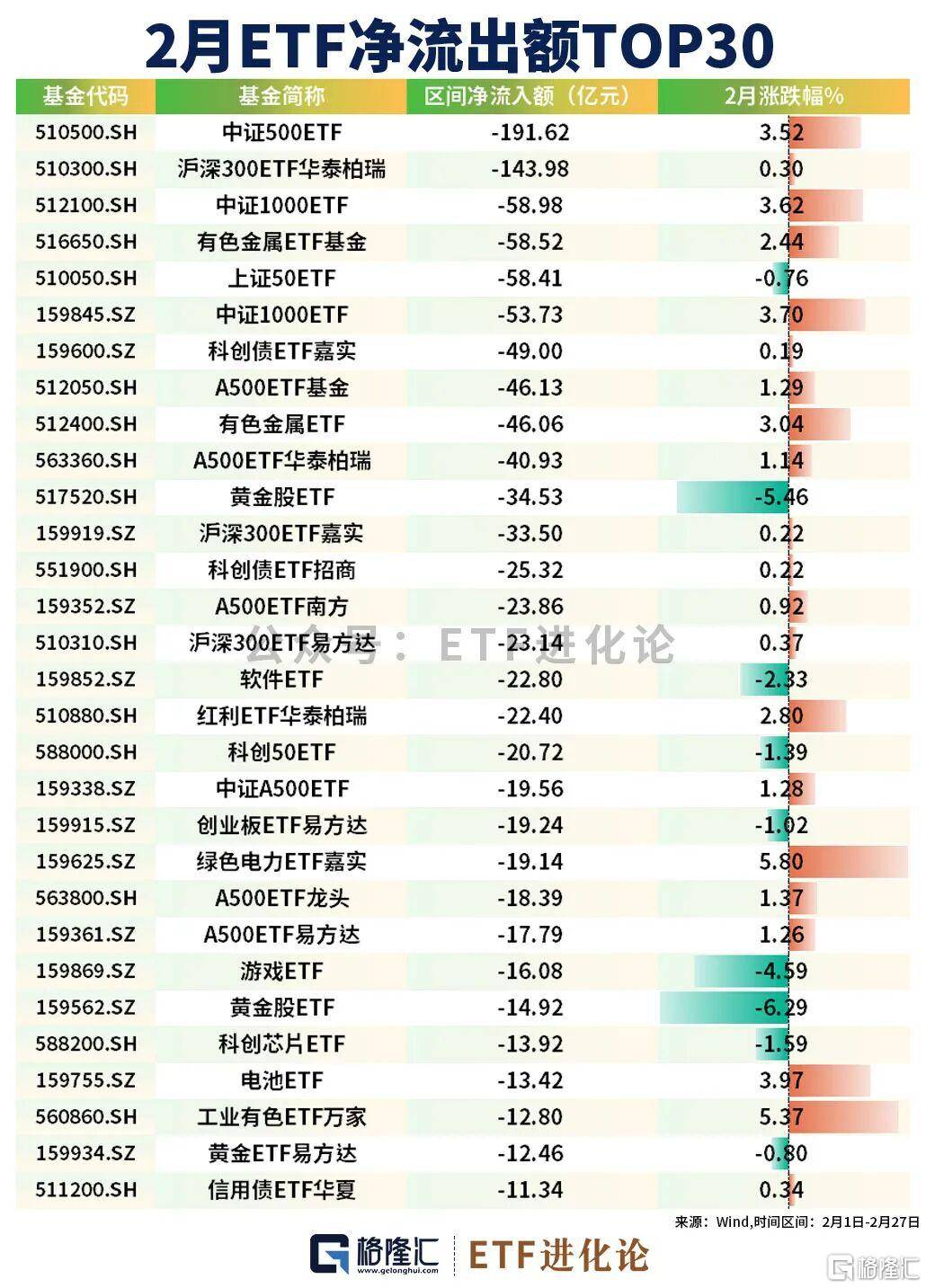 净流出方(fang)面,宽基(ji)指数2月继承(cheng)净流出居前,沪深300、中证A500和中证500均流出超200亿元。