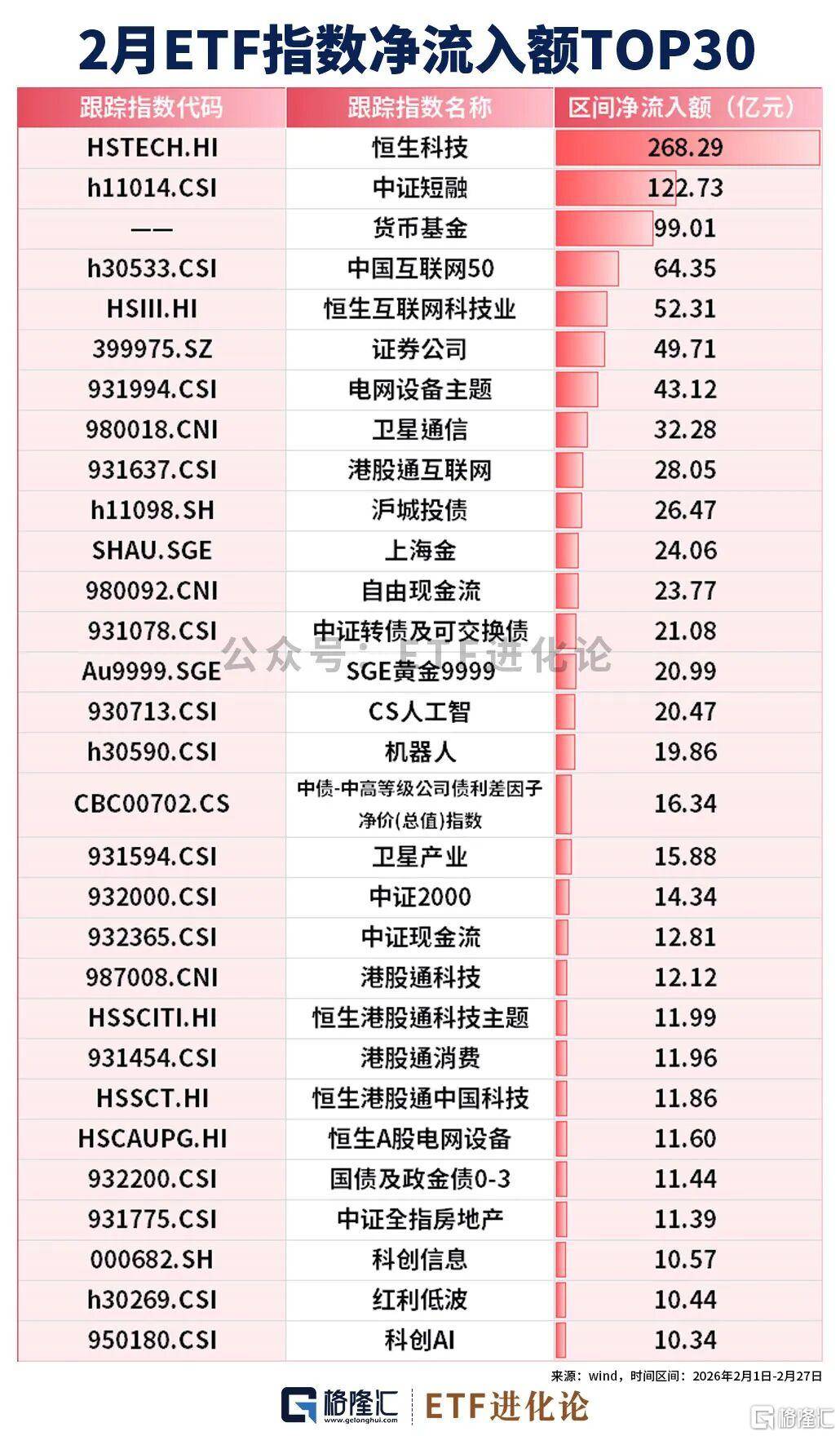 2月,挂钩恒生科(ke)技指数的ETF获净申购268.29亿元,稳居全市场(chang)ETF指数第一(yi)。