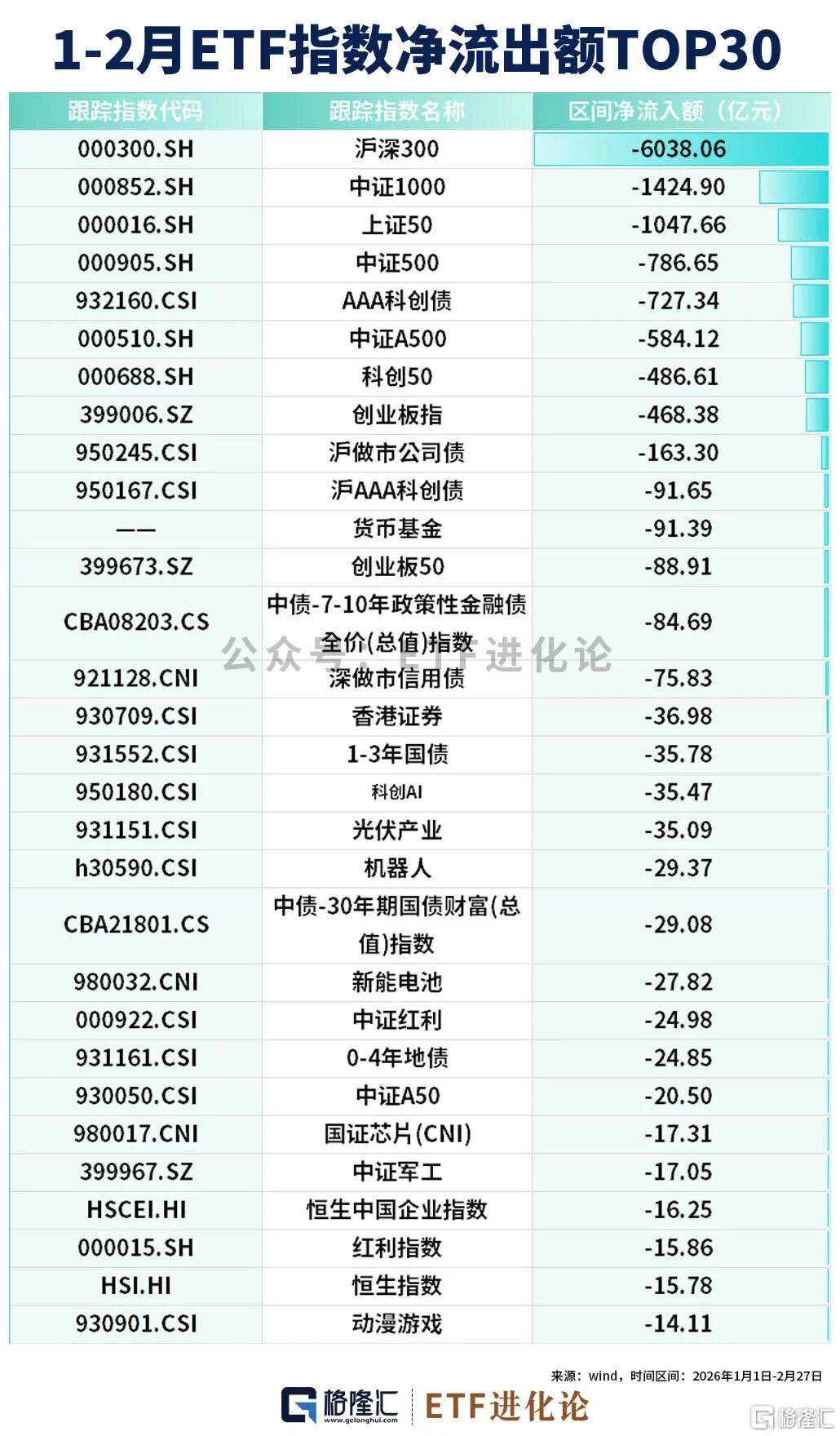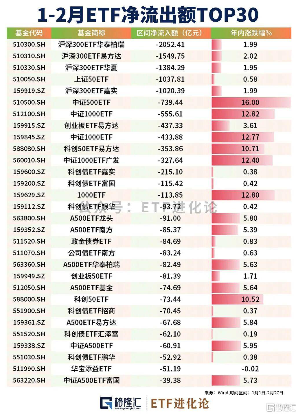 年初至今,挂钩沪深300指数的ETF净流出范(fan)围(wei)高达6038亿元,中证1000、上证50均流出超1000亿。