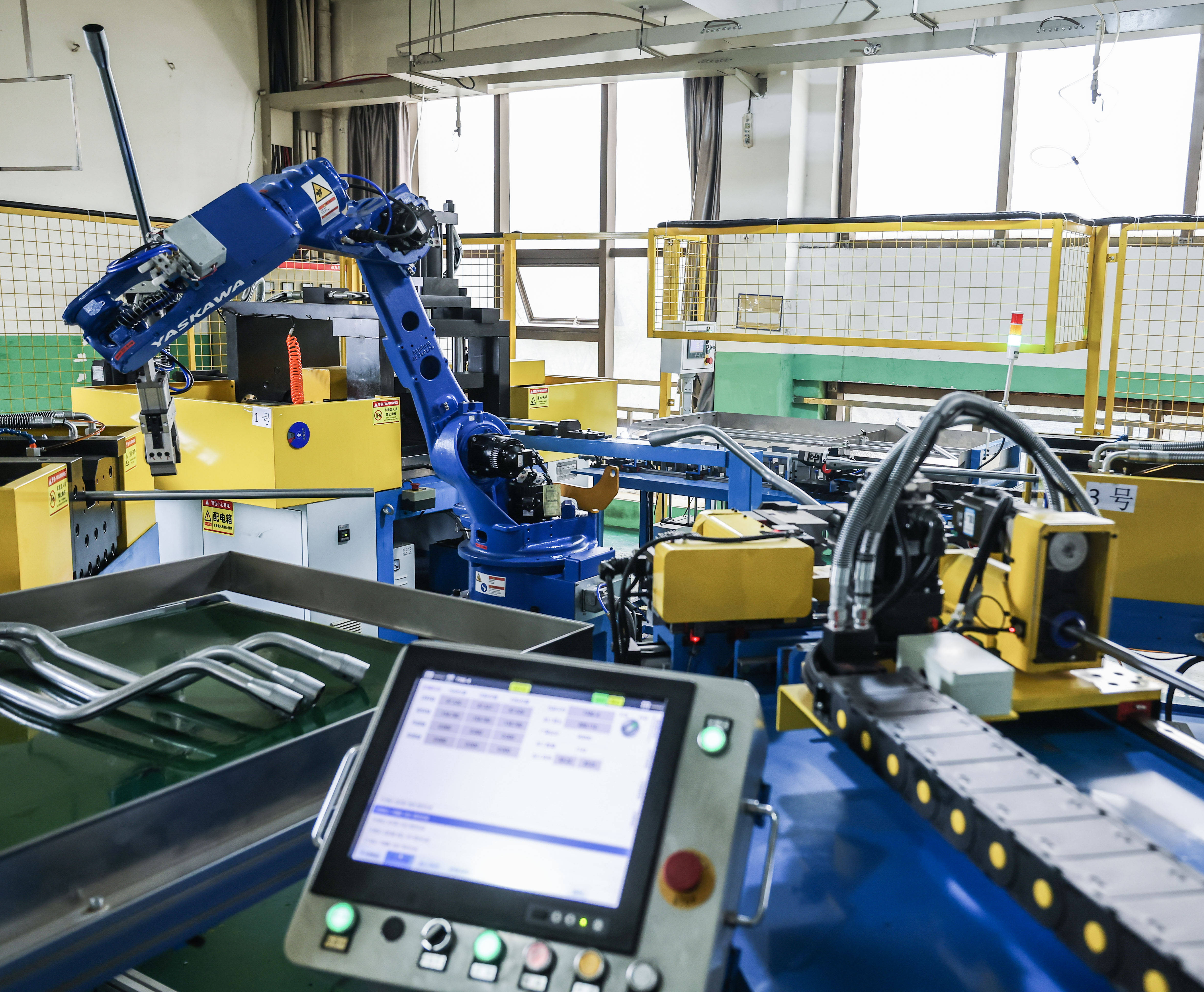 3月26日,正在位于诸暨店口镇的浙江锦安汽车零部件有限(xian)公(gong)司数字化车间内,产业呆板人正在加工车用加油管。该公(gong)司主要从事新能源汽车底盘部件、加油管、高低压线速等产品的研发和生产。 新华社记者 徐(xu)昱 摄