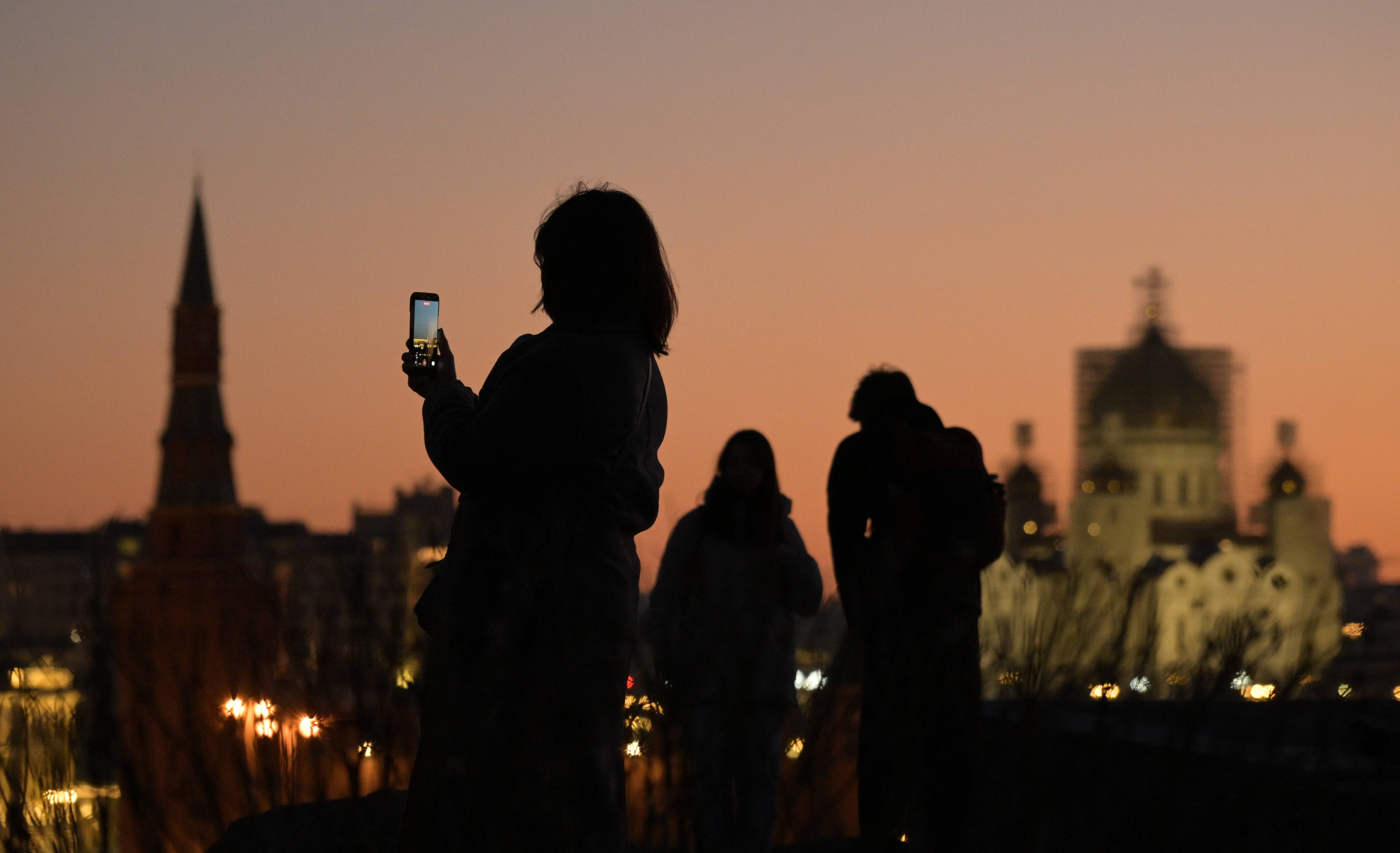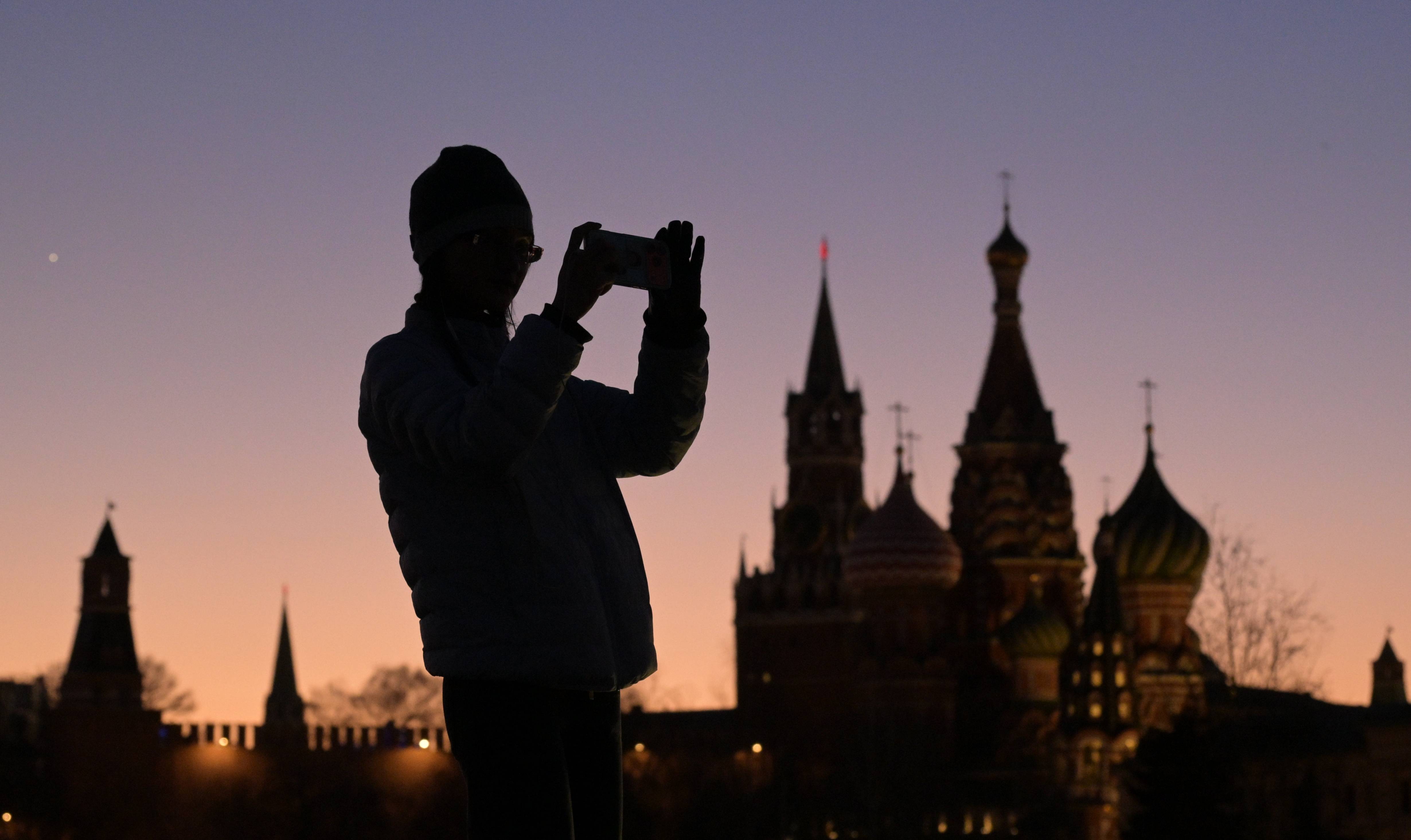 3月23日,一位夫君(jun)在俄罗斯莫斯科扎里(li)亚杰(jie)公(gong)园照相。 新华社/卫星社