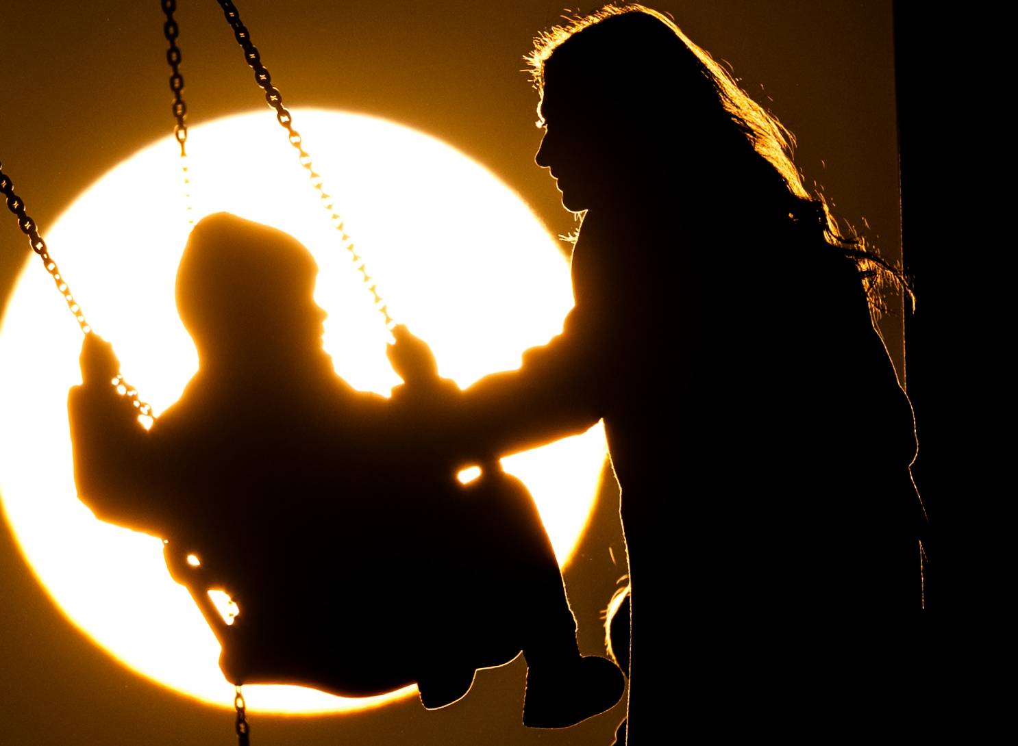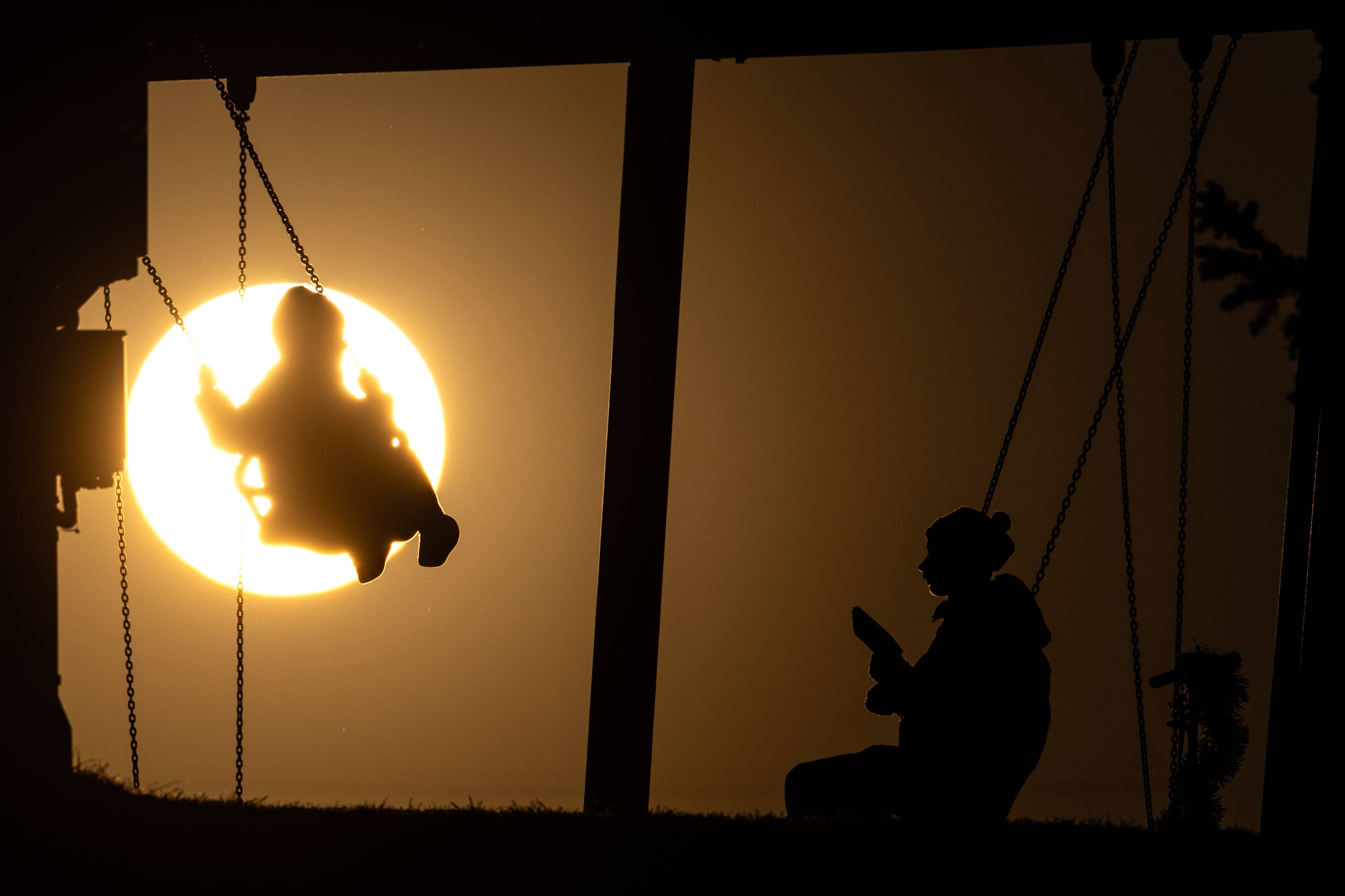 3月25日,一位女子(zi)陪伴一位儿童在俄罗斯莫斯科的一个(ge)公(gong)园荡(dang)秋千。 新华社/卫星社