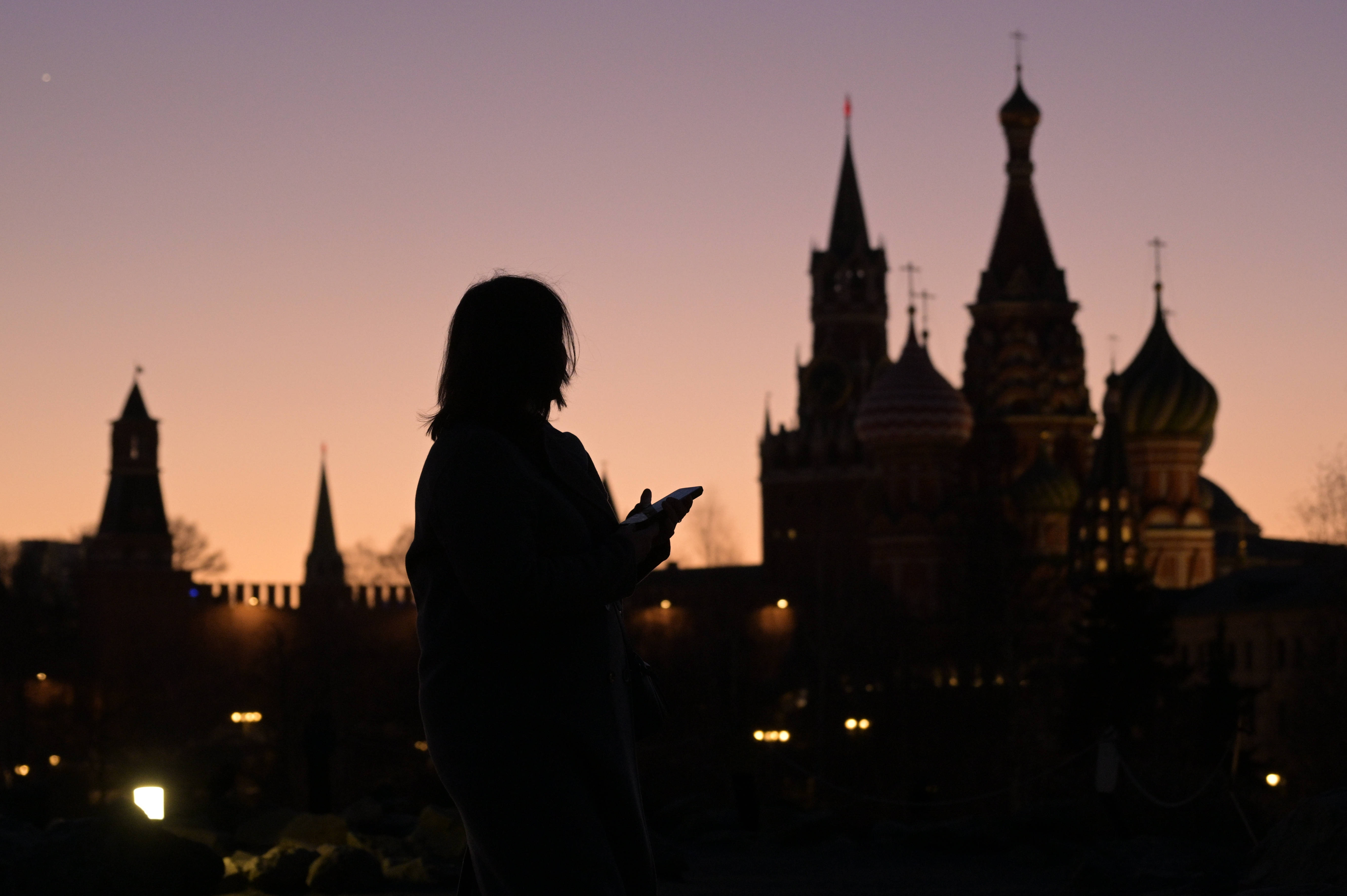 3月23日,一位女子(zi)走在俄罗斯莫斯科扎里(li)亚杰(jie)公(gong)园。 新华社/卫星社